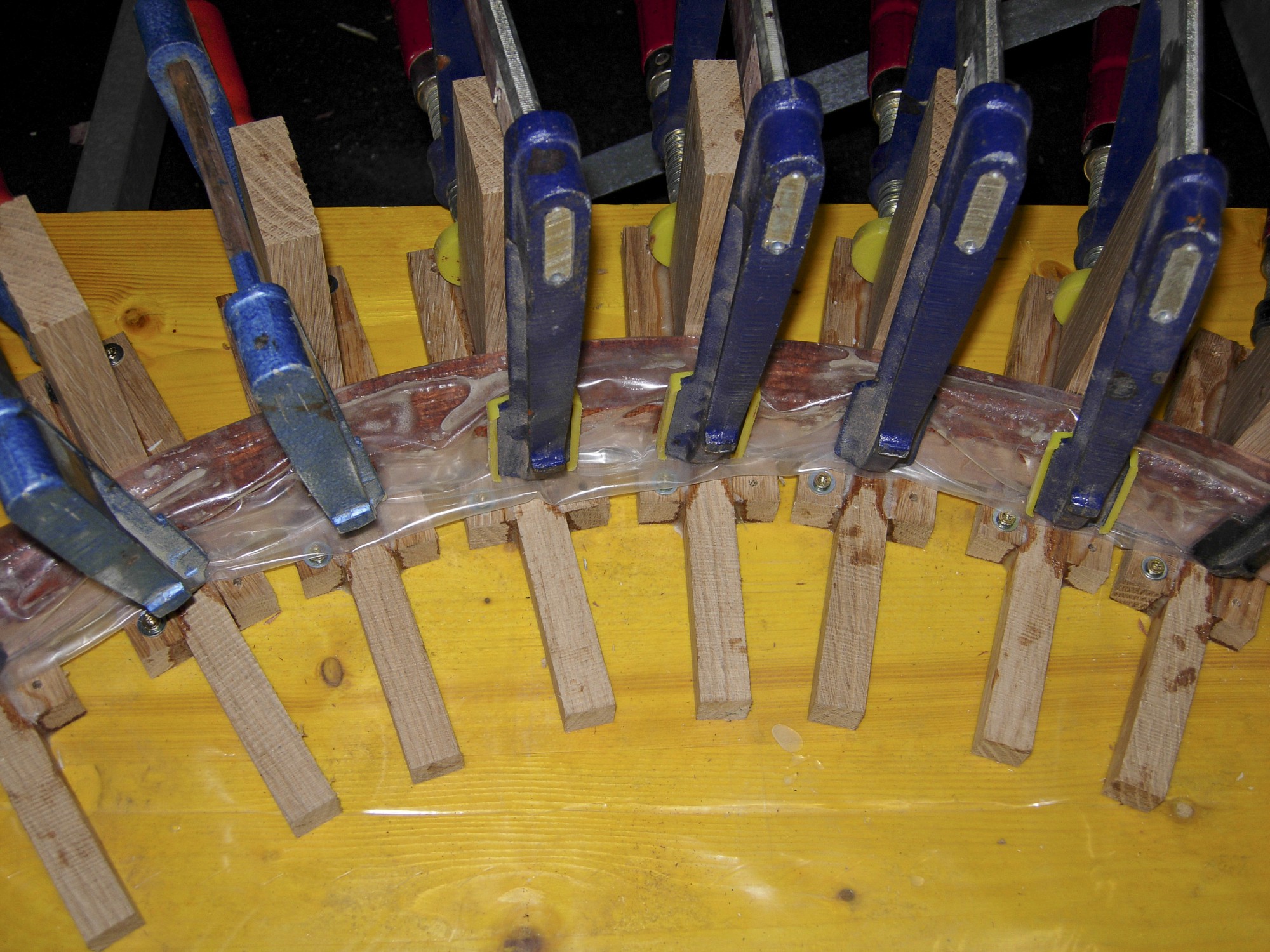 Verleimen mit Epoxy 31. Dezember 2014 • 2000 × 1500 • Spanten und nochmals Spanten Verleimung in Plasikfolie eingehüllt